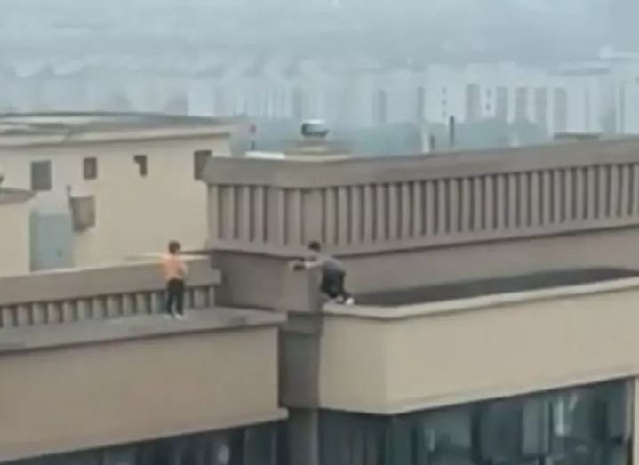 Crianças brincam no topo do prédio, na China, e chegam a pular de um edifício para o outro. Foto: Reprodução/Youtube
